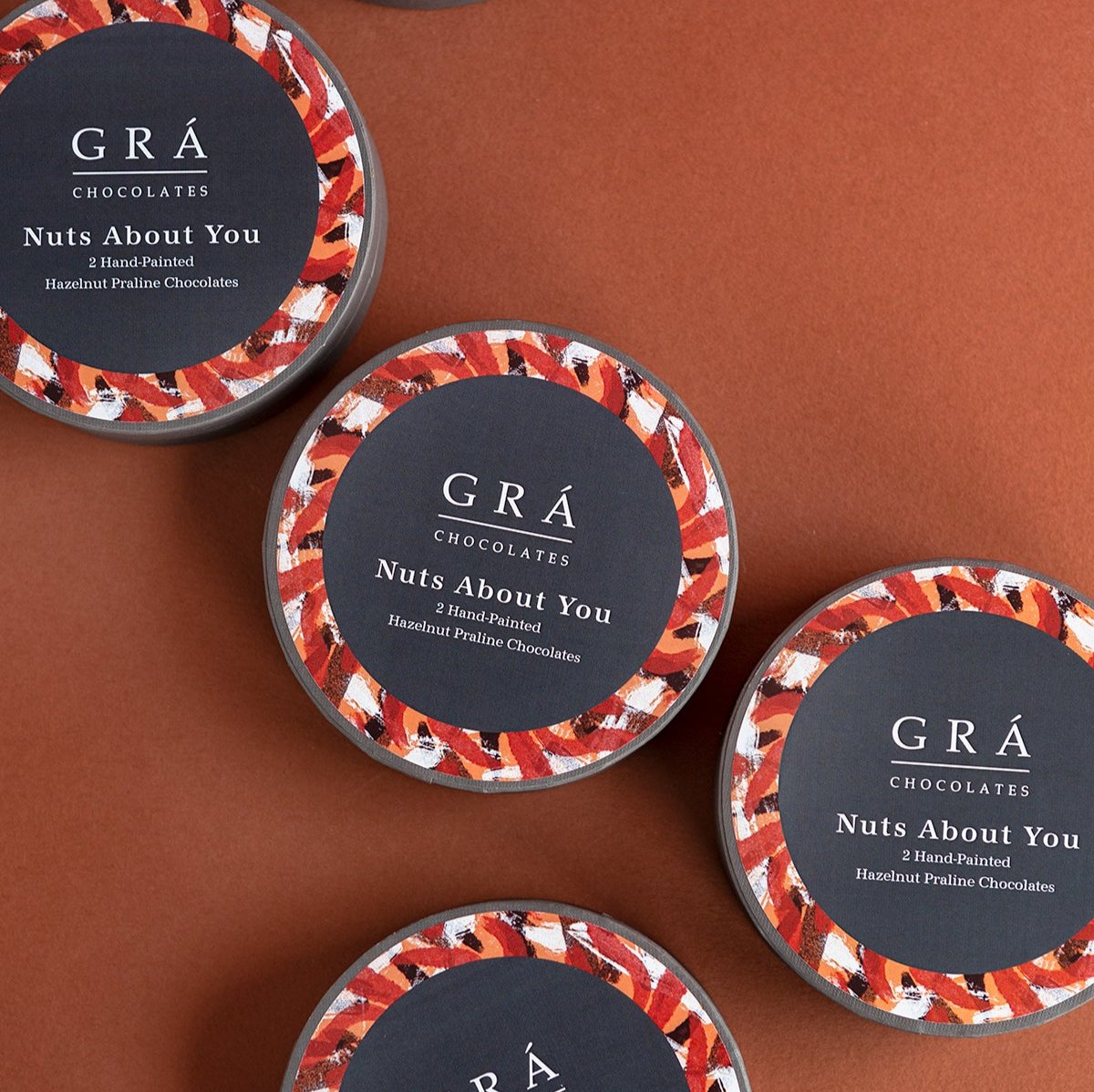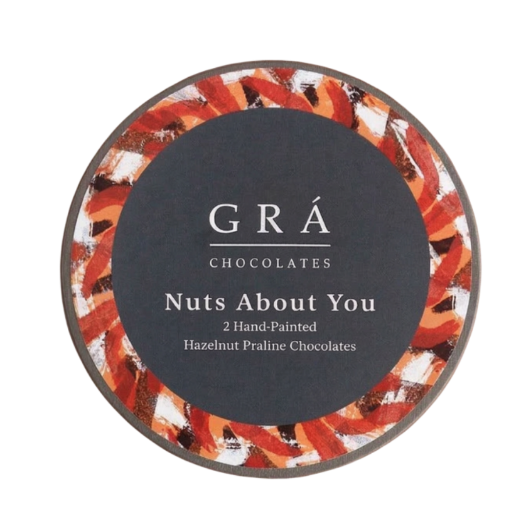 - Box of 2 hand-painted chocolates with original fillings.Nuts About You from the The Grá Chocolates Box, The best quality hazelnuts are used to make our luxurious hazelnut praline with a delicate touch of Achill Island Sea Salt.